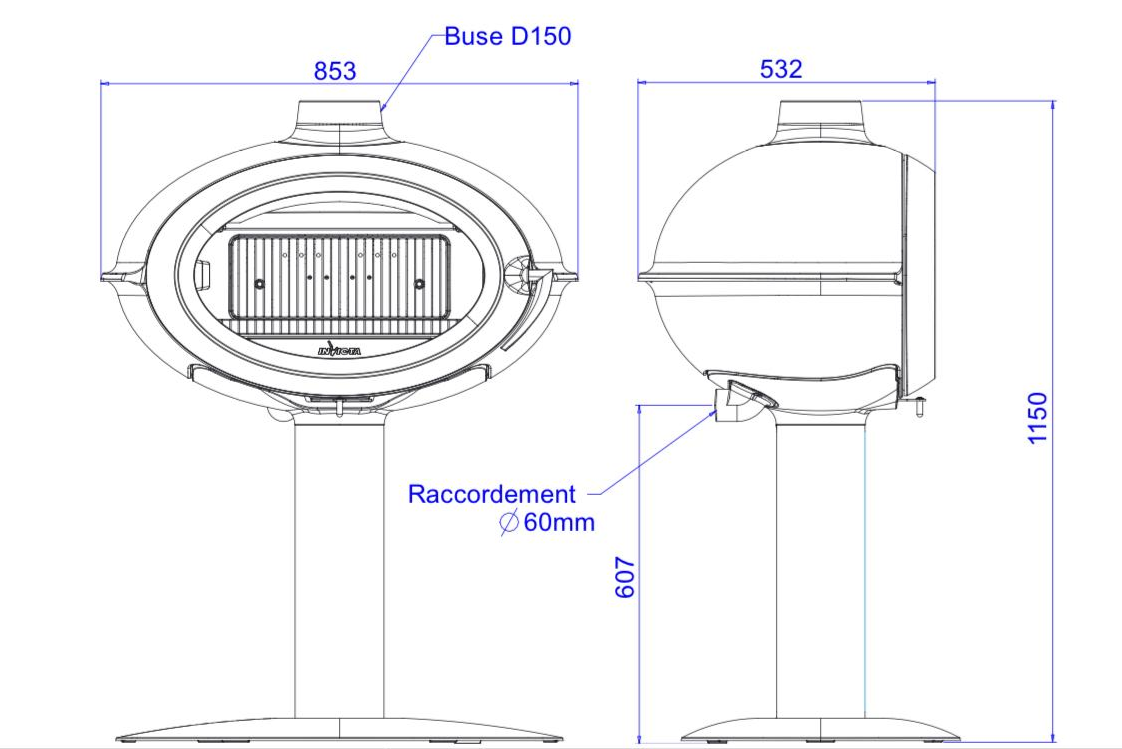 • Ölçüler: H 1150 x W 853 x D 532 mm