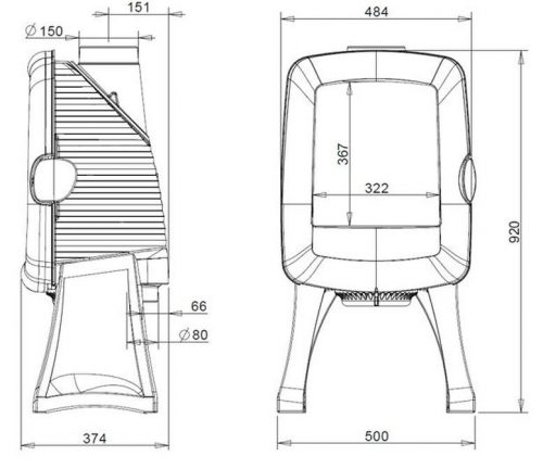 • Ölçüler: H 920 x L 500 x P 374 mm