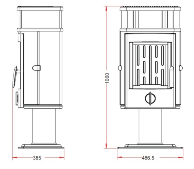 - Ölçüler: H 1060 x W 486,5 x D 385 mm
